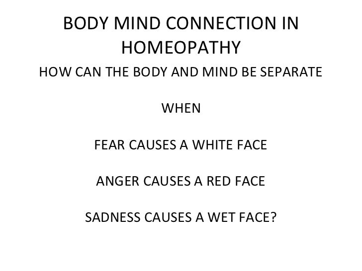 - 93. BODY MIND CONNECTION IN HOMEOPATHYHOW CAN THE BODY AND MIND BE SEPARATE WHEN FEAR CAUSES A WHITE FACE ANGER CAUSES A RED FACE SADNESS CAUSES A WET FACE?