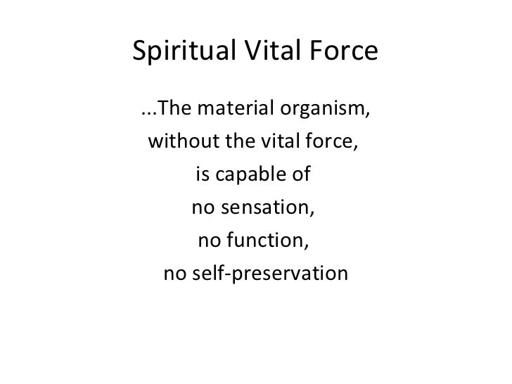 - 12. Spiritual Vital Force...The material organism, without the vital force, is capable of no sensation, no function, no self-preservation
