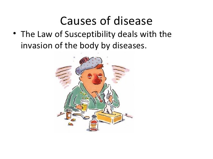 - 15. Causes of disease• The Law of Susceptibility deals with the invasion of the body by diseases.