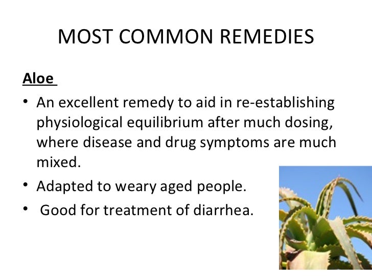 - 146. MOST COMMON REMEDIES Aloe• An excellent remedy to aid in re-establishing physiological equilibrium after much dosing, where disease and drug symptoms are much mixed.• Adapted to weary aged people.• Good for treatment of diarrhea.