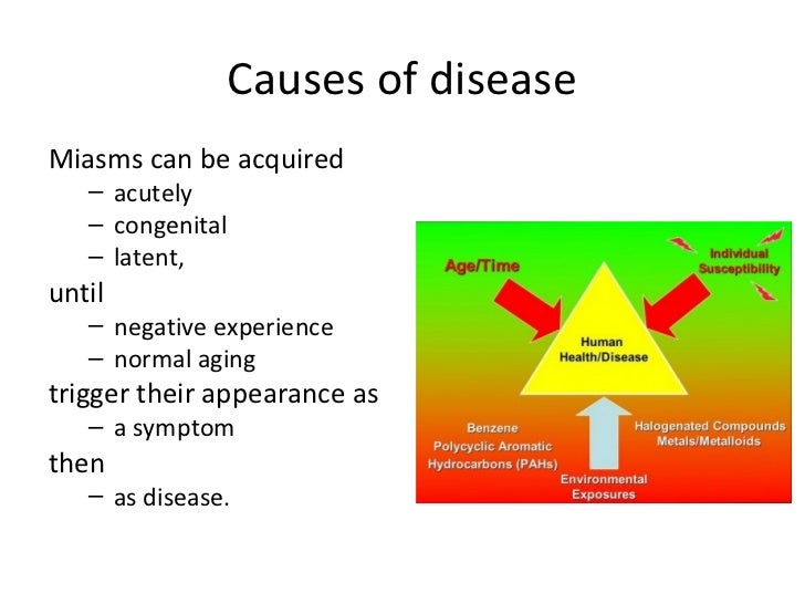 - 17. Causes of diseaseMiasms can be acquired – acutely – congenital – latent,until – negative experience – normal agingtrigger their appearance as – a symptomthen – as disease.