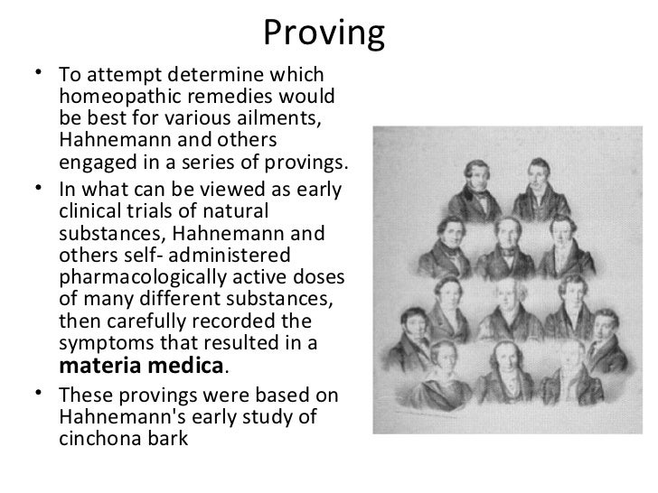 - 35. Proving• Hahnemann stressed that homeopaths should add to the materia medica with his own provings