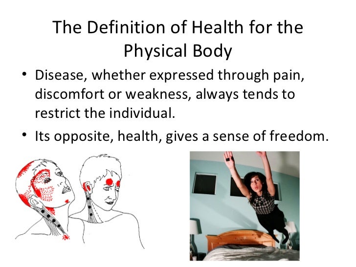 - 44. The Definition of Health for the Physical Body• Disease, whether expressed through pain, discomfort or weakness, always tends to restrict the individual.• Its opposite, health, gives a sense of freedom.