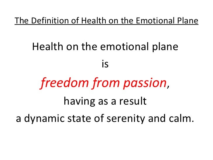 - 54. The Definition of Health on the Emotional Plane Health on the emotional plane is freedom from passion, having as a resulta dynamic state of serenity and calm.