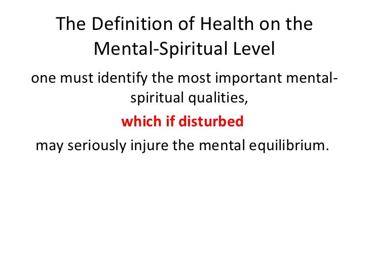 - 55. The Definition of Health on the Mental-Spiritual Levelone must identify the most important mental- spiritual qualities, which if disturbed may seriously injure the mental equilibrium.