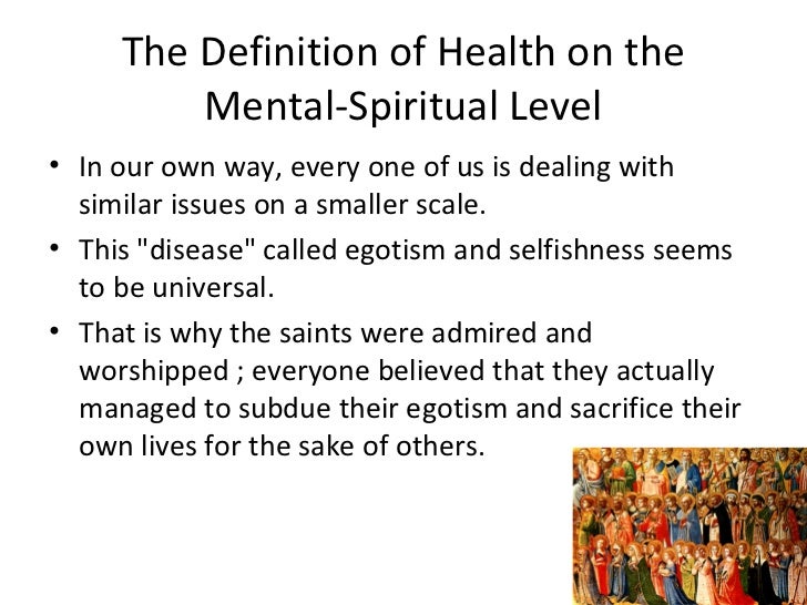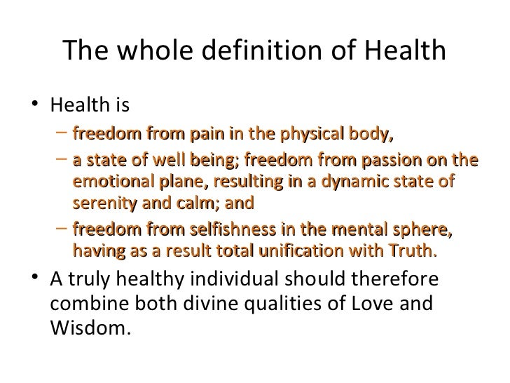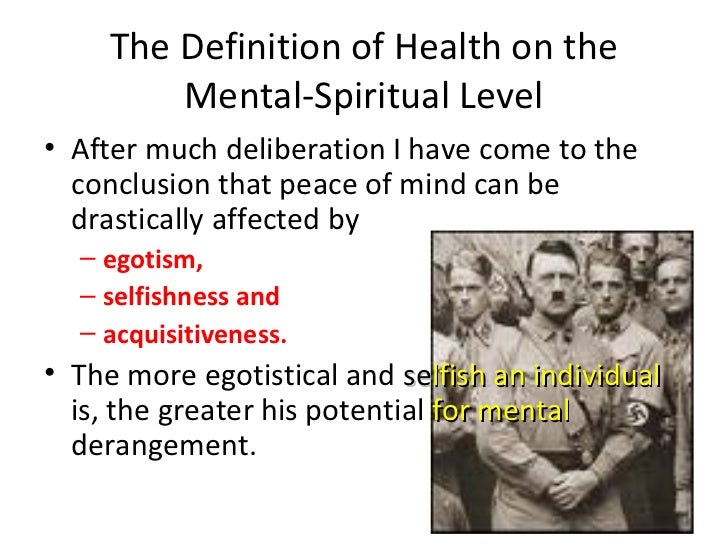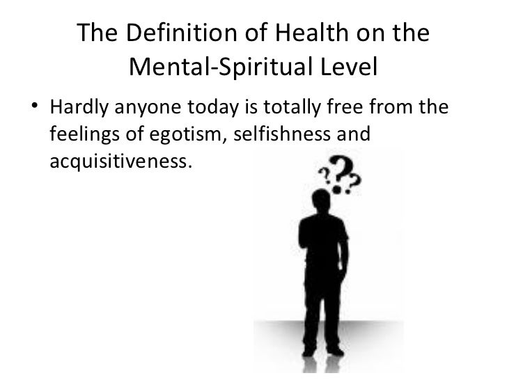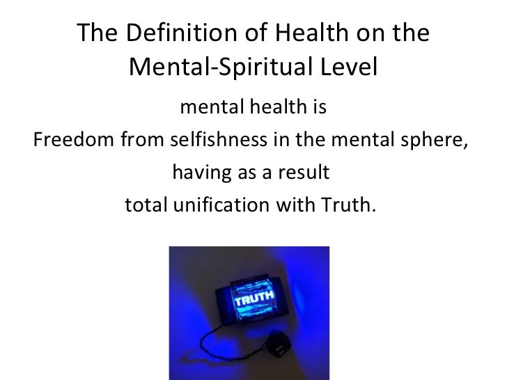 - 66. The Definition of Health on the Mental-Spiritual Level mental health isFreedom from selfishness in the mental sphere, having as a result total unification with Truth.