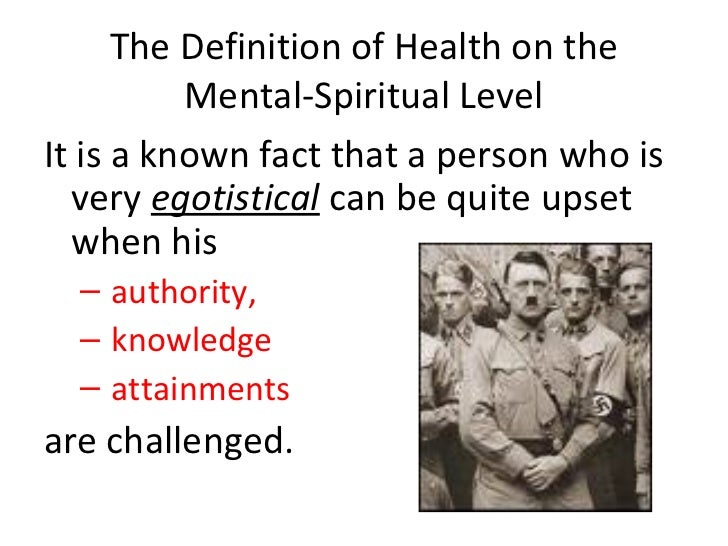 - 57. The Definition of Health on the Mental-Spiritual LevelIt is a known fact that a person who is very egotistical can be quite upset when his – authority, – knowledge – attainmentsare challenged.