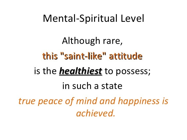 - 65. Mental-Spiritual Level Although rare, this "saint-like" attitude is the healthiest to possess; in such a statetrue peace of mind and happiness is achieved.