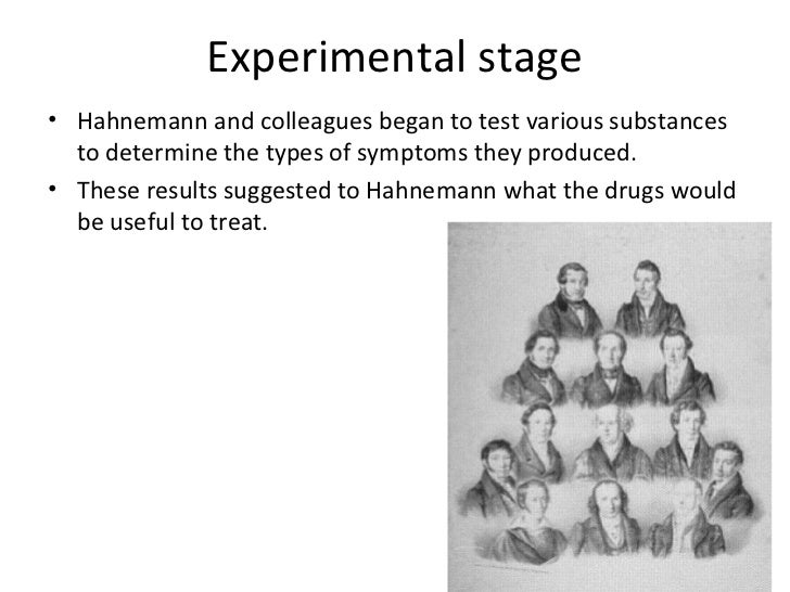 - 8. Experimental stage• Hahnemann and colleagues began to test various substances to determine the types of symptoms they produced.• These results suggested to Hahnemann what the drugs would be useful to treat.